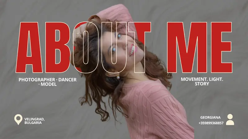 Hi, I'm Georgiana — born in Romania, raised in Spain, and now based in Velingrad, Bulgaria. Dance brought me in front of the camera. Modelling taught me how it really feels to be there — the good, the uncomfortable, and everything in between. That experience is what I bring to every shoot.
